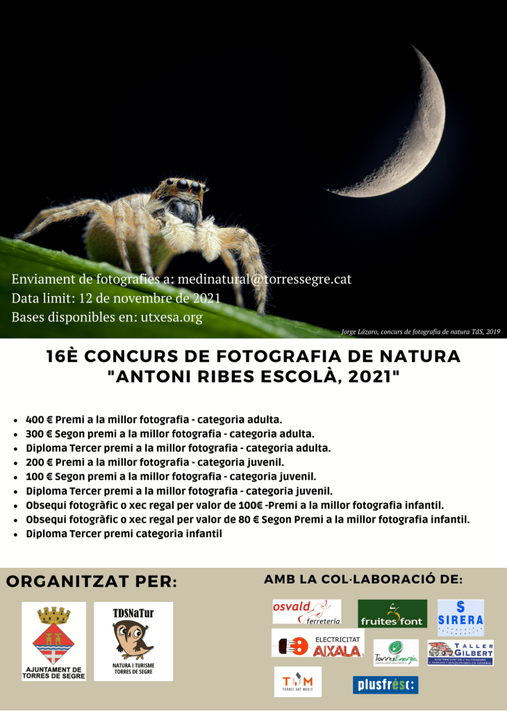 Concurs de Fotografia 16na edició del concurs de fotografia de natura “antoni ribes escolà” Aqui teniu les bases per participar BASES CONCURS FOTOGRAFIA, 2021Descarga Compártelo: Share on X (S'obre en una nova finestra) X Comparteix al Facebook (S'obre en una nova finestra) Facebook M'agrada S'està carregant...